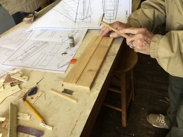 The building of the Flattie kit by Corel began this past Saturday at the club’s model workshop aboard the Eureka. Members Paul Reck, Tom Shea and Clare Hess started the project. This kit is part of an effort by the club to recommend some ship model kits for new builders, and to serve as an intro kit for new club members. And, while the kit is officially a recommended kit, this is based mostly on cost, simplicity of the boat’s design, and simple rig.