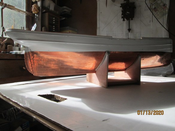 Paul bought the kit on Ebay. It was produced long ago by the old plastic model company “Pyro”. Paul likes to build these Pyro kits and he built a bomb ketch that he brought to a model club meeting many years back.