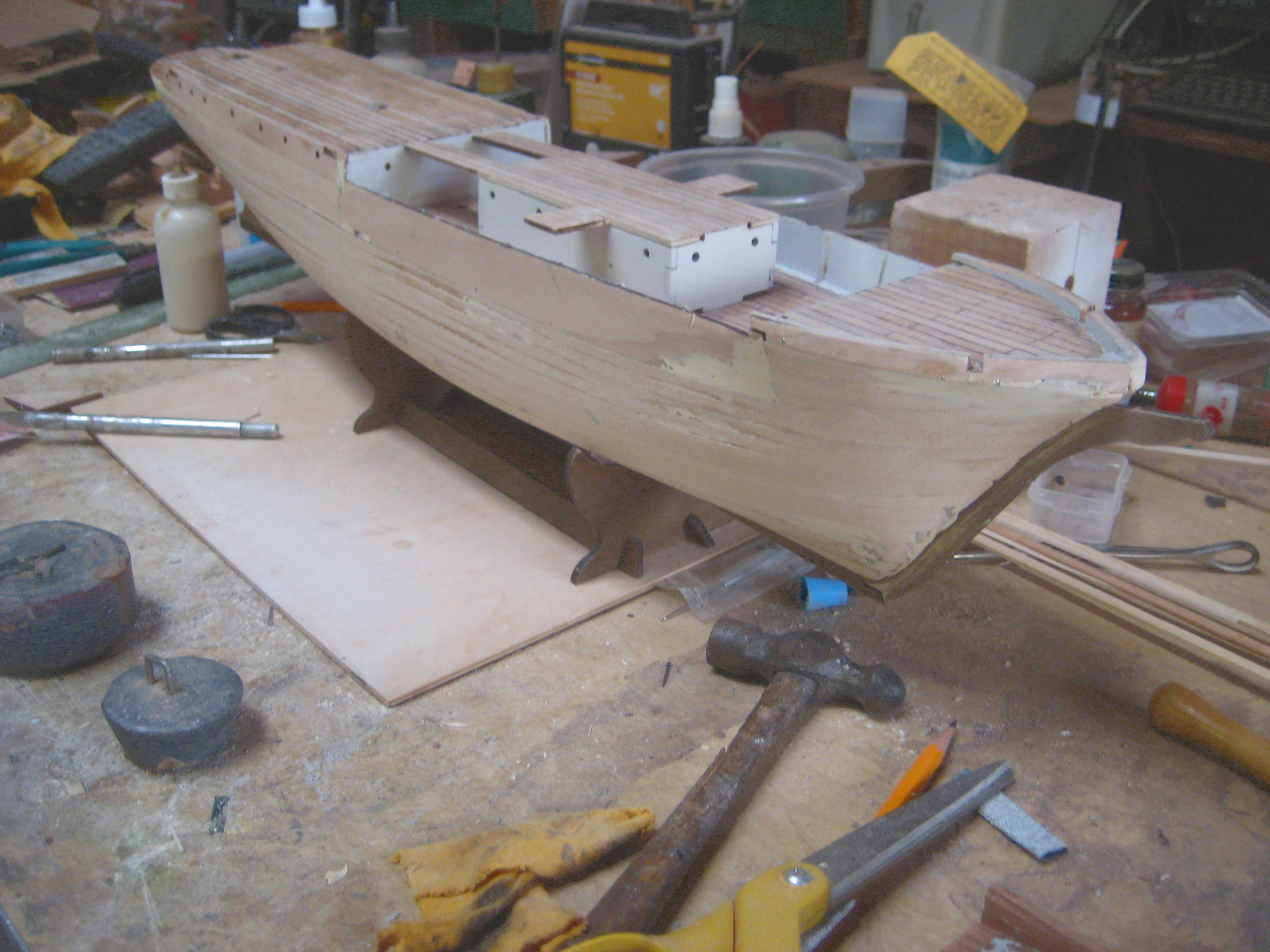 But, getting back to the Endurance, Paul mentioned that the kit is well designed, and that the instructions have you planking the decks before attaching them to the hull, making them very easy to plank, since there are no bulwarks or deck structures to get in the way. He also liked the use of sycamore for the provided deck planking, though he did say that there is some color variation between strips of wood.